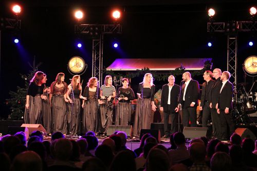 Bis spät in die Adventsnacht rockte die fünfköpfige Coverband Love4Sale nach einem 20-jährigen Dornröschenschlaf pünktlich zum 20-jährigen Jubiläum des Weihnachtsmarktes und bot einen krönenden Abschluss für den ausgezeichneten Konzertabend.